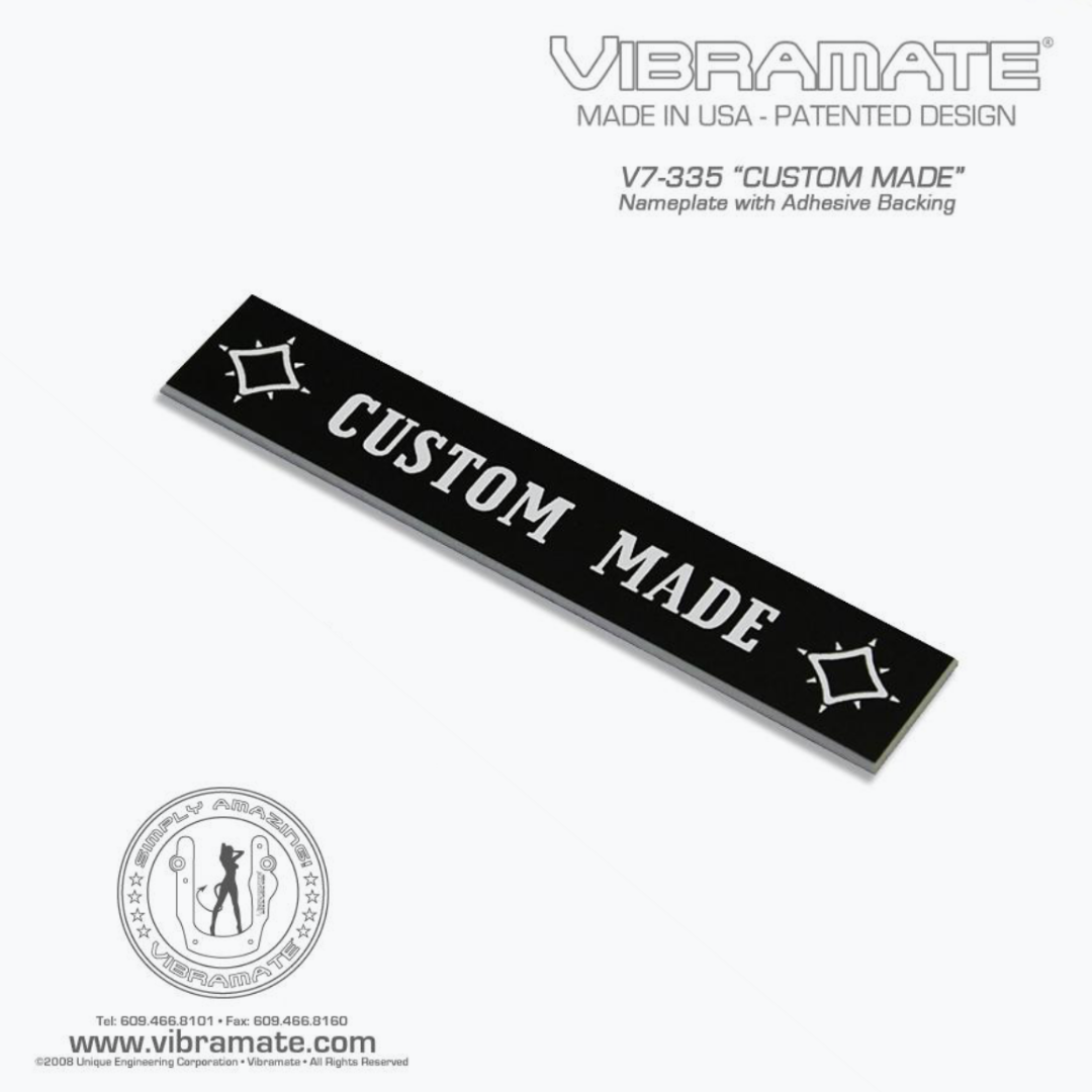 This is a replacement nameplate cover for the Vibramate V7-335 Mounting Kit designed for Arch Top guitars. It can also be used on any other guitar or anywhere you are looking for the classic “CUSTOM MADE” nameplate to be used. It is approximately 4″ long by 3/4″ wide and comes with an adhesive backing. Allparts # PG-0819-033