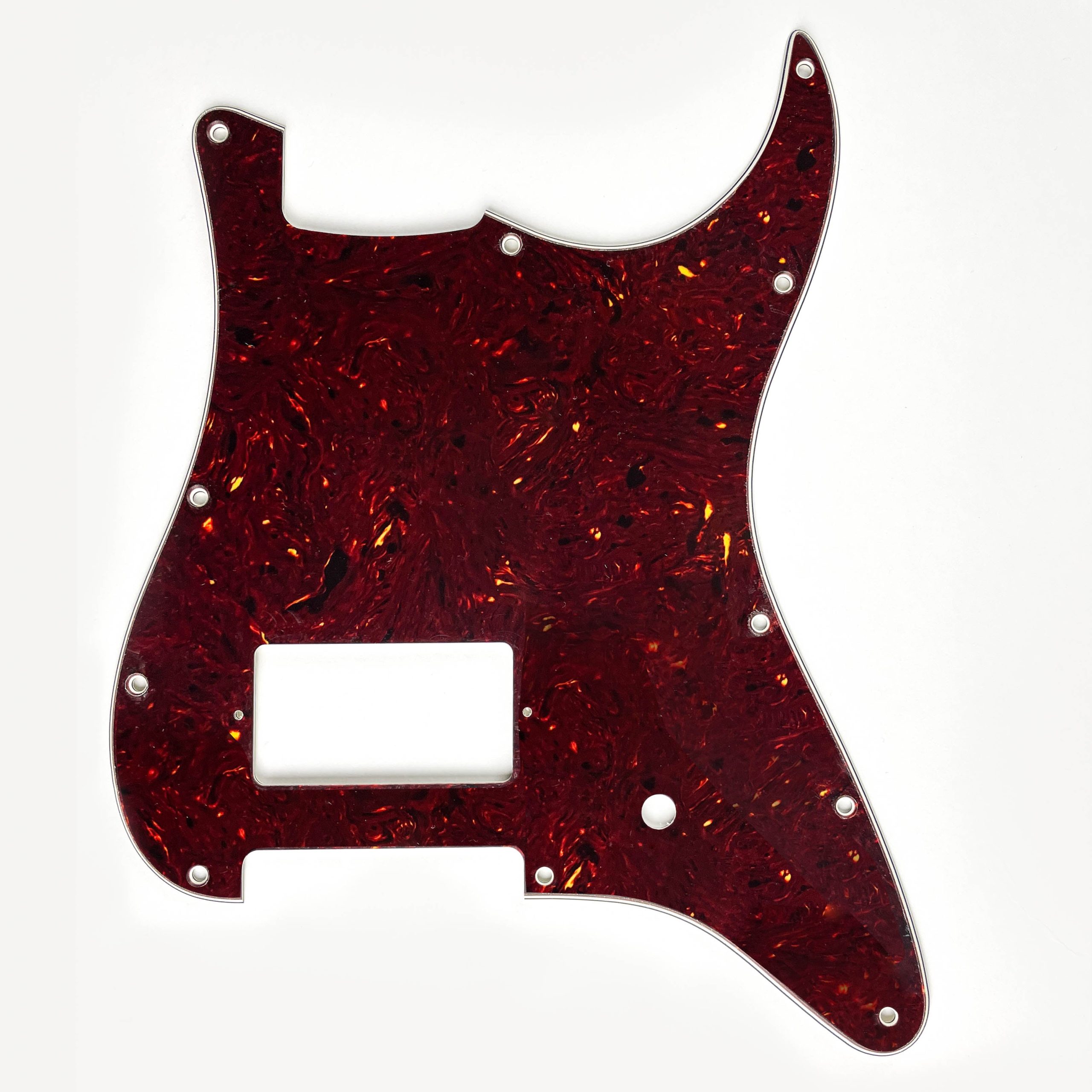 Stratocaster® pickguard with single humbucker at bridge configuration. Fits USA spec Fender®. Not compatible with Squire®.