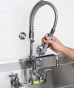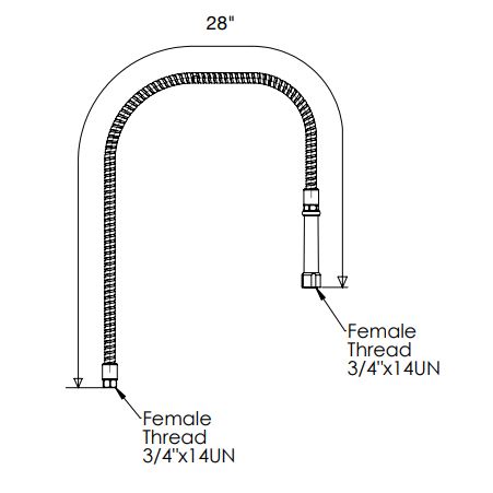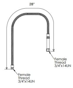 This flexible 28″ hose with handle is made of stainless steel for use with pre-rinse faucet.