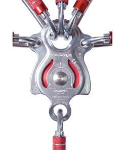 The D-shaped top hole accepts up to 3 large rescue carabiners or multiple small carabiners and allows the carabiners to be rotated freely and completely through the hole. Side plates are precisely tensioned to aid one-handed use. Solid side plates also help to further reduce snagging. Sealed ball bearings provide optimal efficiency and reduce the performance-robbing resistance that is inherent in most multiple component systems and are not prone to failure under misaligned loads or with twisted gear that may occur with needle bearing.