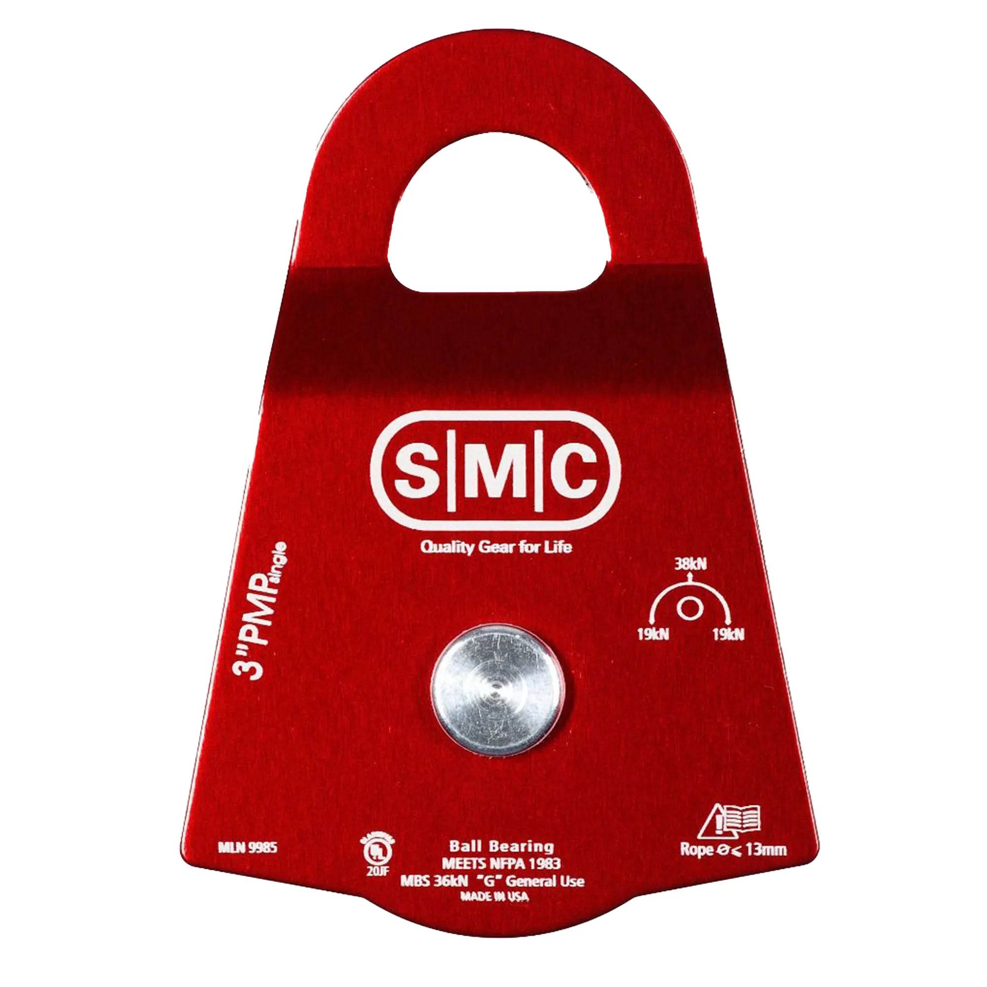 The largest of SMC’s Prusik Minding Pulleys (PMP), the 3″ Single PMP is designed to handle the heaviest loads and toughest situations. The large D ring attachment point can fit 3 large rescue carabiners and still allow them to move freely. The solid side plates and sealed bearings prevent snagging or unnecessary resistance to ensure efficiency and avoid misalignment. This pulley is excellent for everything from progress capture in hauling, highlining, or rescue scenarios.