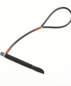 A 3/32” (#2-size) galvanized aircraft cable wrist loop is attached to the 5/8″ Blunt Chisel and is looped around a smooth, lathe-cut groove. The cable is covered with 1/4” black PVC tubing and the zinc-plated copper sleeves are covered with red PVC heat-shrink, for a smooth and comfortable feel. The 5/8″ Blunt Chisel is wrapped with black athletic cloth tape, for comfort and improved grip.