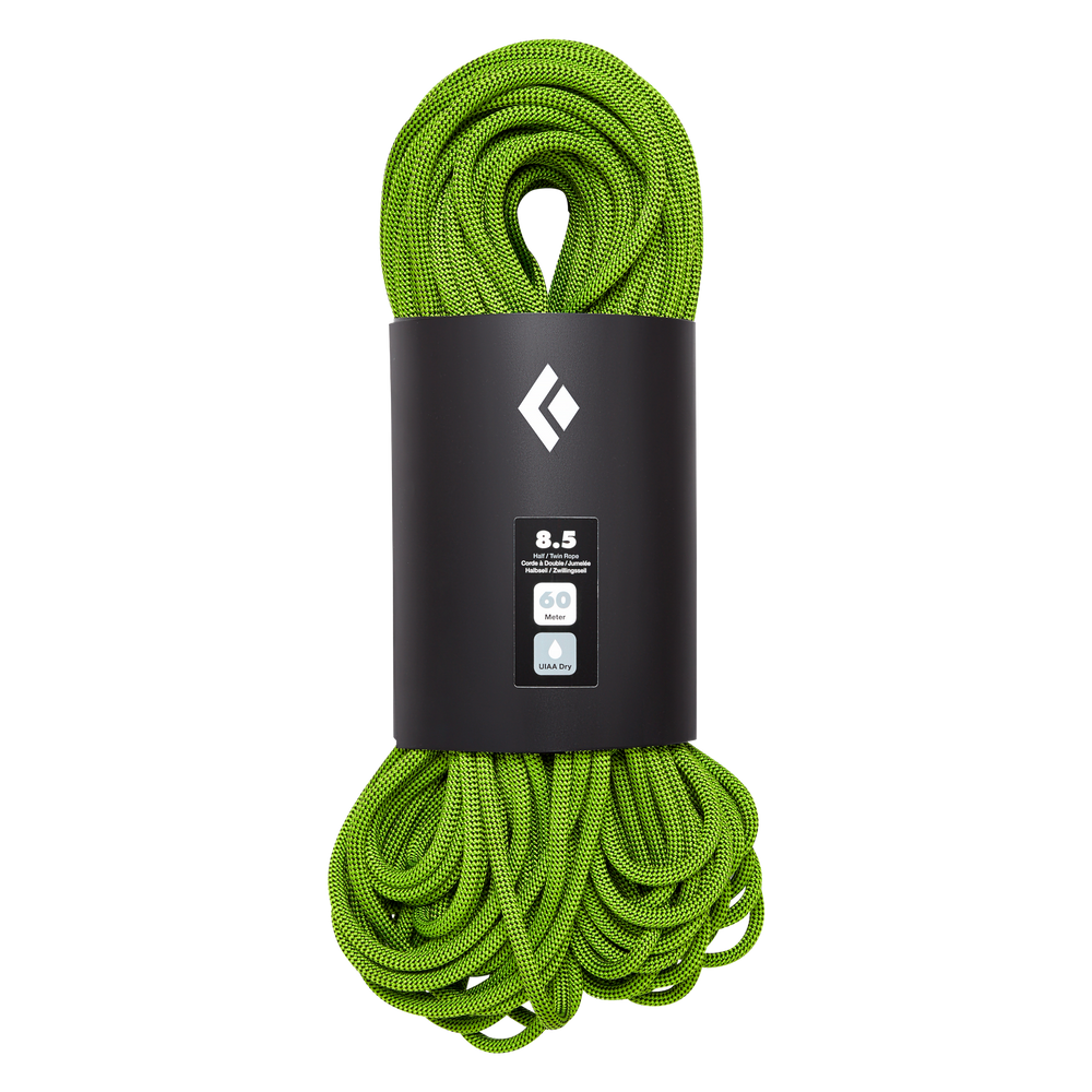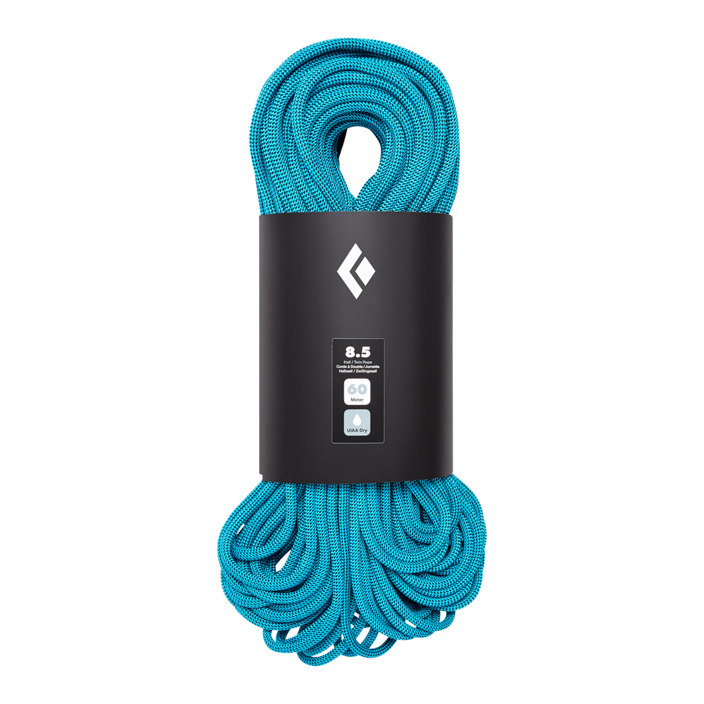 Built for versatility, the Black Diamond 8.5 scales both rock and ice. Designed to be used as half ropes or in a twin configuration, the 8.5 features a dry treated core and sheath to repel moisture from the inside out. The sheath’s 2X2 weave construction increases the 8.5’s lifespan, while the middle marker is easily identifiable for rappels.