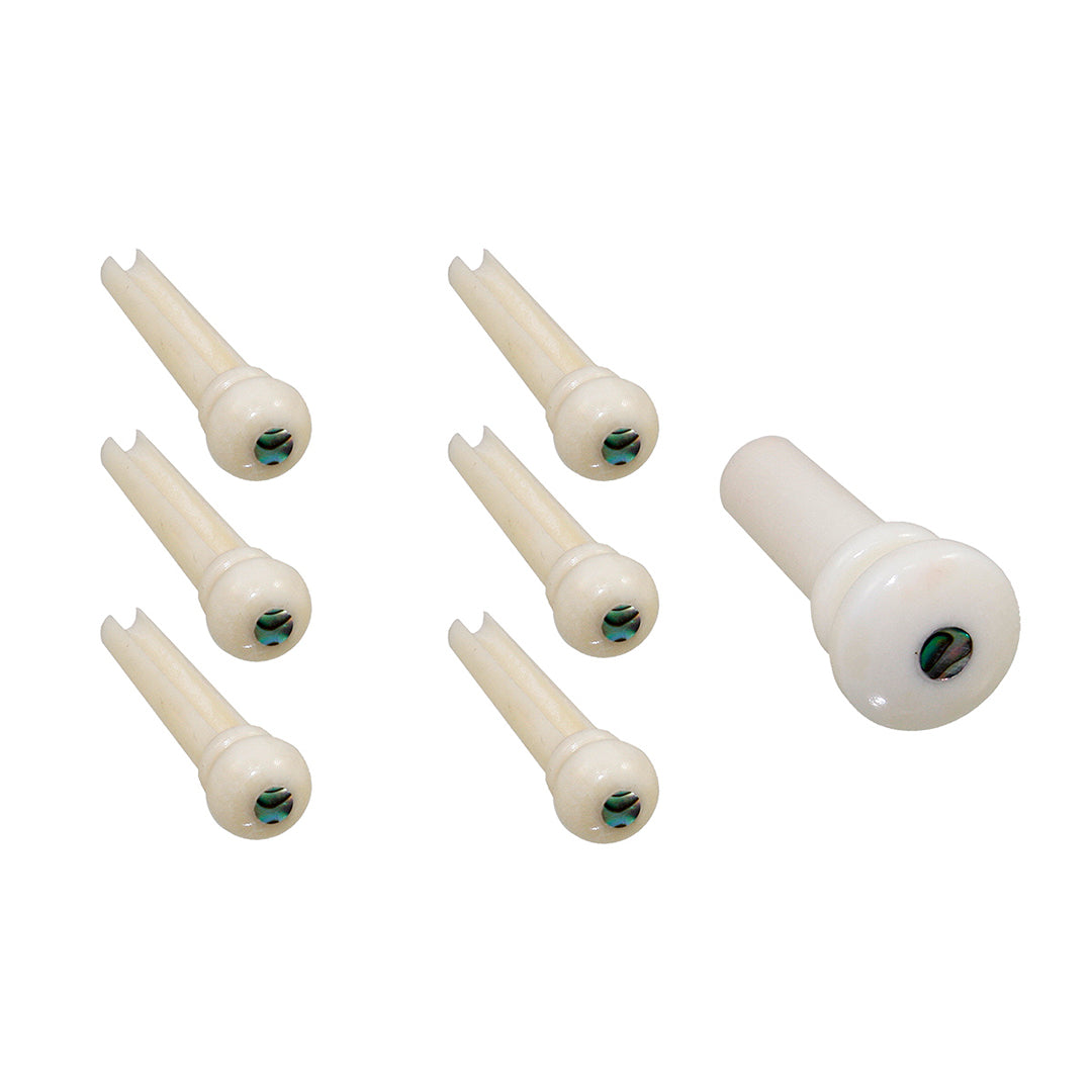 Set of 6 bone bridge pins and 1 end pin, slotted.