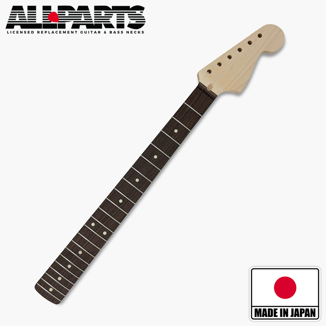 Our JZRO-MOD replacement neck for Jazzmaster® is “officially licensed by Fender®” and made to exacting quality standards in Japan. Based on our best-selling JZRO neck, this “MOD” version offers truss rod adjustment at the headstock rather than at the neck heel. With a modern 9.5″ radius and tall, narrow frets our JZRO-MOD offers easier string bending and precise intonation. And with truss rod adjustment at headstock, seasonal adjustments will be easier than ever. Unfinished and ready to spray, you can finish our JZRO-MOD any way you’d like!