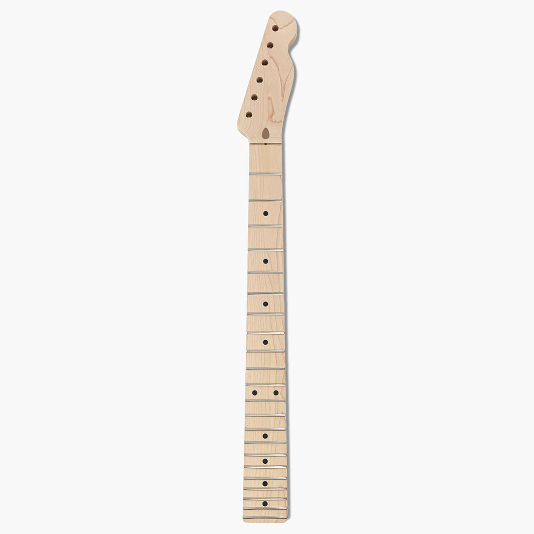 Our TMO-22 replacement neck for Telecaster® is “officially licensed by Fender®” and made to exacting quality standards in Japan. With 22 jumbo frets and a flatter 12″ fretboard radius, this neck is built for speed! A favorite for those seeking to upgrade their old Tele® and bring it into the 21st century with more modern playability!