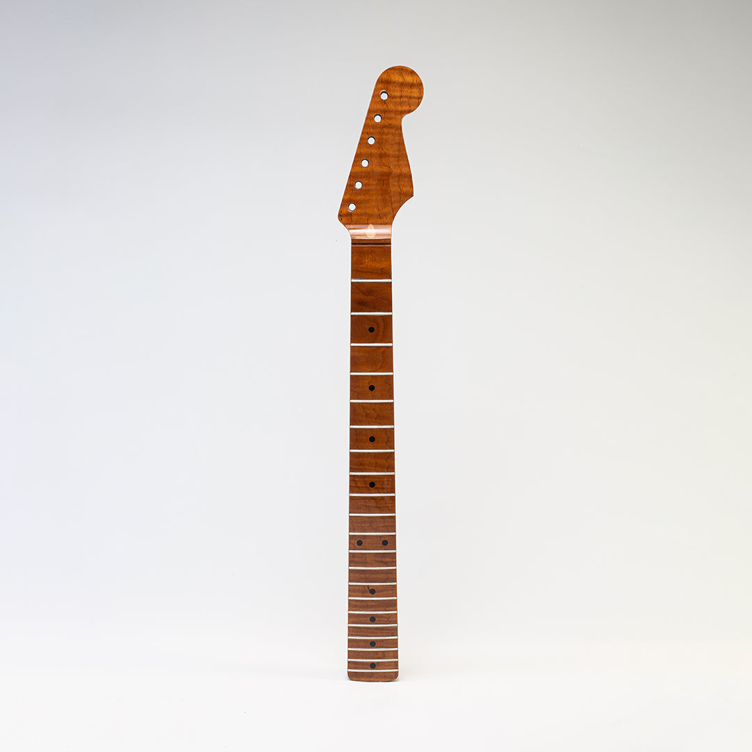 Officially licensed by Fender® and made to exacting quality standards in Japan using AAA+ Roasted Flame Maple, this Select series “Vintage Spec” neck honors the golden age of electric guitar production. Featuring a 7.25″ fretboard radius, vintage narrow frets, and a soft V-shaped neck profile, this neck is perfect for fans of early production Stratocaster® models, or players who play with their thumb over the fretboard. Finished with tinted nitro (over poly) to accentuate the visual qualities of the flamed maple, this neck offers a truly custom level of beauty, comfort, and stability.