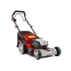 Double ball-bearing front wheels provide easy handling. The front wheels’ special wedge shape minimizes impact on the grass, which quickly springs back up to be cut by the blade. This delivers extremely uniform cutting results. Cutting height can be adjusted to 5 levels from 40–80 mm via a spring-supported system, by foot or by hand. Aggressive tread rear wheels ensure optimal traction and propulsion.