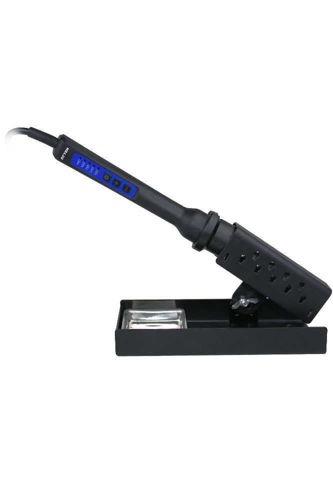 Store your soldering iron safely, using this high quality, all metal construction soldering iron stand from Atten. The angle of the mount is adjustable and there is a tray to carry a cleaning sponge (not included).