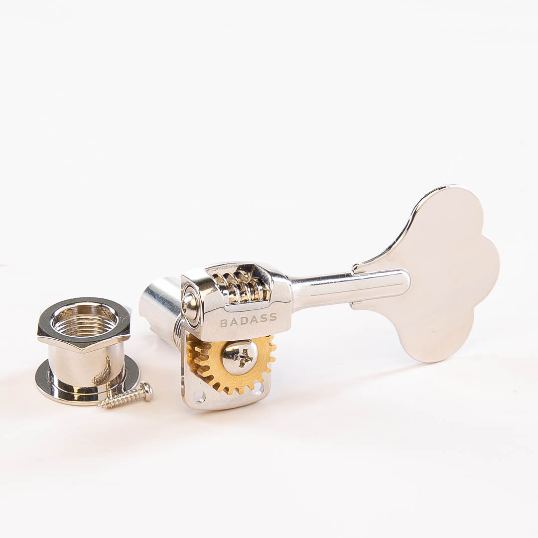 Small but mighty, our OGT Mini Bass Tuners pack professional-grade features into a compact and classy package. Featuring a light-weight zinc base plate, durable steel worm-gear, precision-machined brass gear, 20:1 gear ratio, solid brass string post, hex-head worm-gear tension screw, and tension washer between the base plate and string post, our OGT Minis offer an amazing blend of tone, stability, and tuning accuracy. After all, why settle for average when you can be Badass?