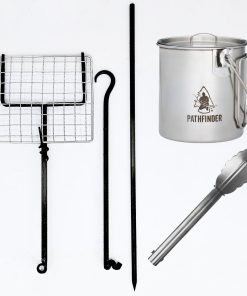 Our Bedroll Cooker kit is straightforward and user-friendly, with a hanging mechanism and a cooking rack.