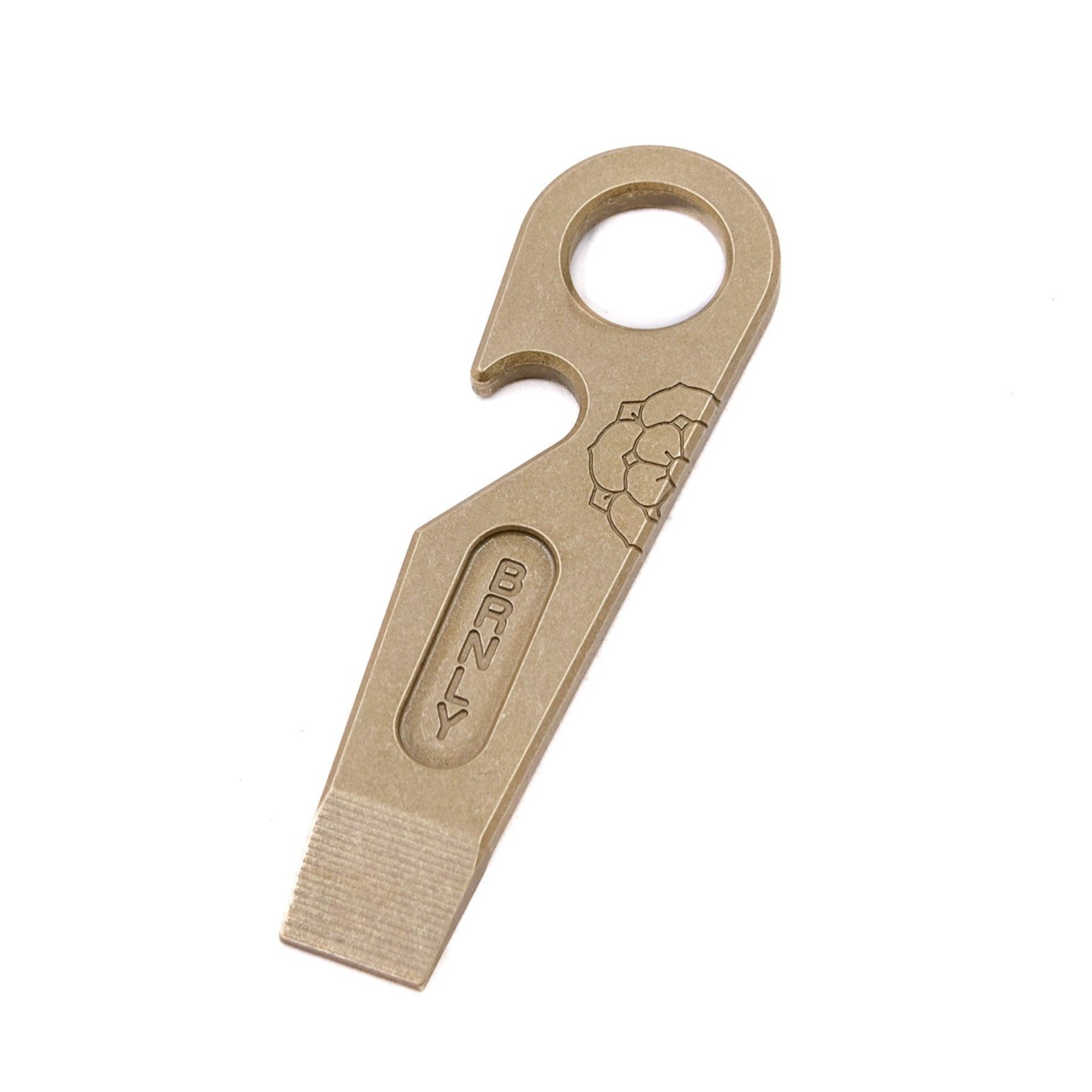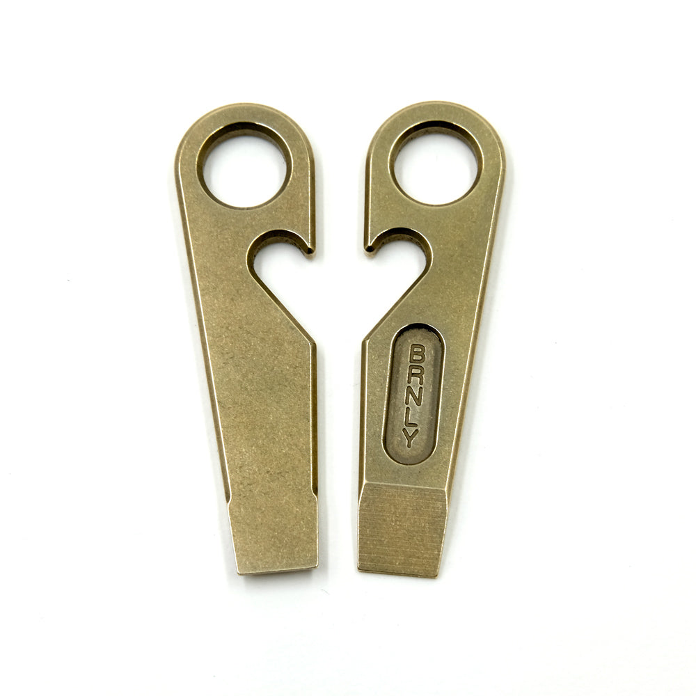The Titanium Polly is a tough, lightweight keychain pry-bar. But brass is just one of those metals that we can’t get enough of. It has warmth, heft, and develops a nice patina (if you’re into that sort of thing). This Brass Polly will still pop bottles, but the pry-bar is probably better suited to some “lighter lifting” (think lifting beer can tabs and scratching lottery tickets.)