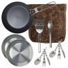•2 Stainless Steel Plates – Durable, easy to clean, and perfect for outdoor meals. Made of 304 .5mm thick Stainless Steel, 1.25″ high, and 6.75″ wide, and weighing 4.8 oz.