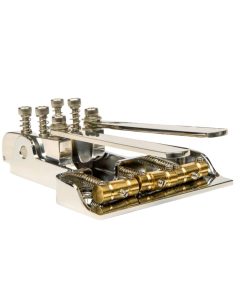 Made for Tele® models (and custom builds) with a humbucker or P-90 in the bridge position, the Certano T-Bender “Coupe Universel” (universal cut) allows players to bend the B or G string up a half or whole step to achieve glistening pedal steel tones and ultra-expressive chord voicings. Installation requires little to no drilling and absolutely no routing! Compensated brass saddles offer classic tone and accurate intonation, and tension-loaded arms can be set for optimal comfort or moved out of the way entirely. Simple, elegant and complete, the Certano T-Bender “Coupe Universel” is the ultimate B & G bender solution.