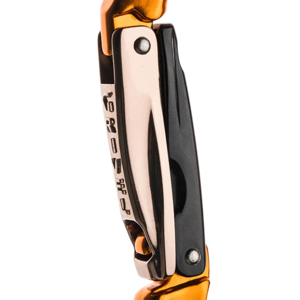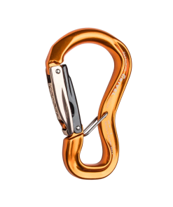Unique shape carabiner with Twin-Gate wire-gate and Captive systems. Comfortable and easy to manipulate.