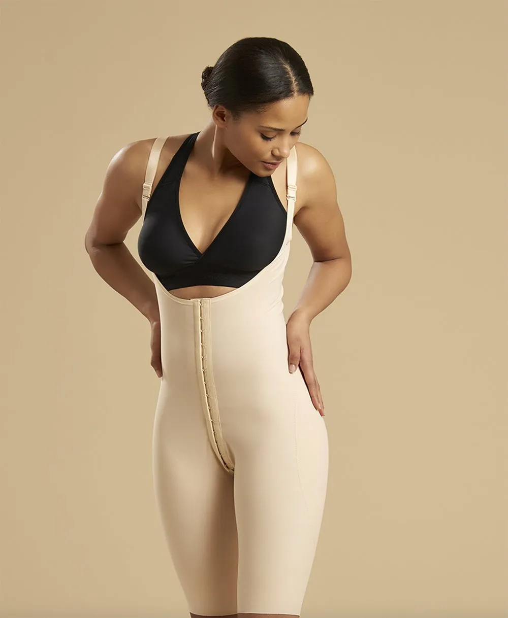 The Compression Bodysuit For BBL Fat Transfer FBCS covered buttocks garment combines an infinity edge with a soft, lighter weight fabric. This therefore ensures a smooth, perfect shape. Making use of Marena’s patented fabric with scientifically proven, healing 17-21mmHG compression. Easy to insert sacral pads that allow for adjustments depending on your procedure.