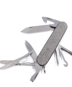 The Daily Customs Super Tinker takes the platform of the do-everything Victorinox Super Tinker and replaces the red plastic scales with strong, lightweight custom titanium scales. For our BRNLY exclusive, the titanium scales have been milled with our Burnley Rose logo.