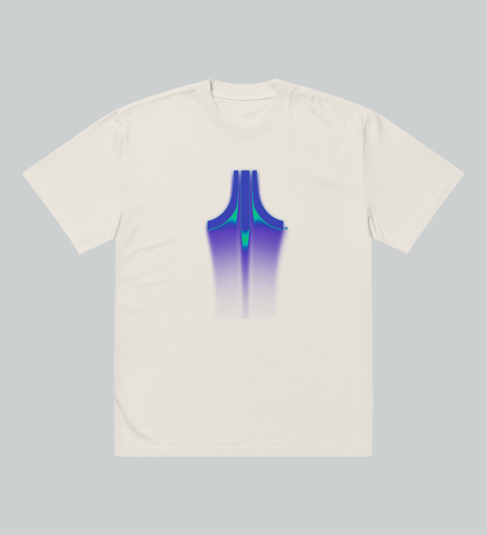An oversized dayglow rainbow Fuji tee, perfect for an outdoor festival or indoor LAN party. Made from 100% cotton, preshrunk to minimize shrinkage; comes in black or bone.