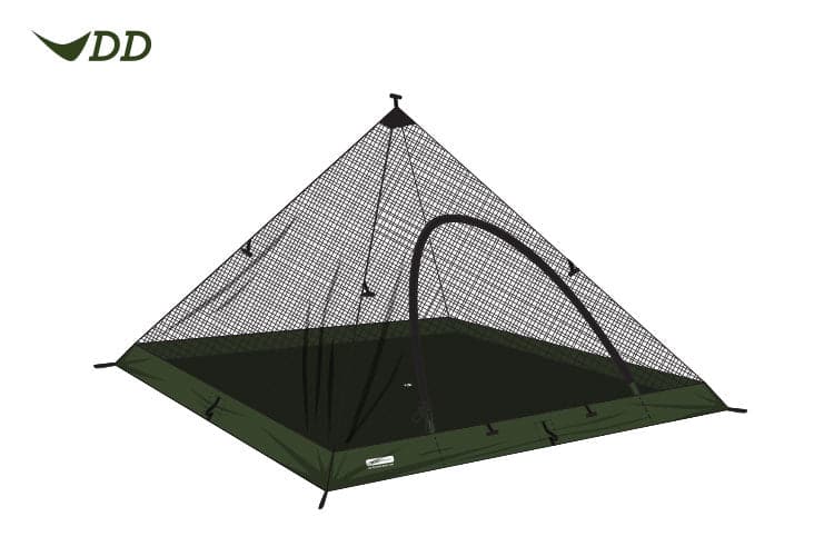 The DD SuperLight Pyramid Mesh Tent is spacious for a solo camper plus a rucksack or comfortable for 2 people. Used with the DD SuperLight Pyramid Tent as an outer waterproof layer, it’s ideal for camping in anything from woodlands to beaches and hilltops. If you’re using it without its outer counterpart, you can enjoy it on a trip simply as protection from tropical insects (or from Scottish midges)!