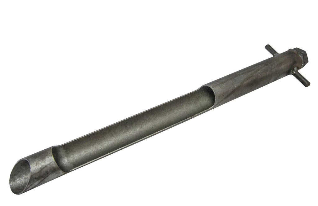Drive the punch into the ground and pull it out with the handles. Makes a 1 1/2″ hole.