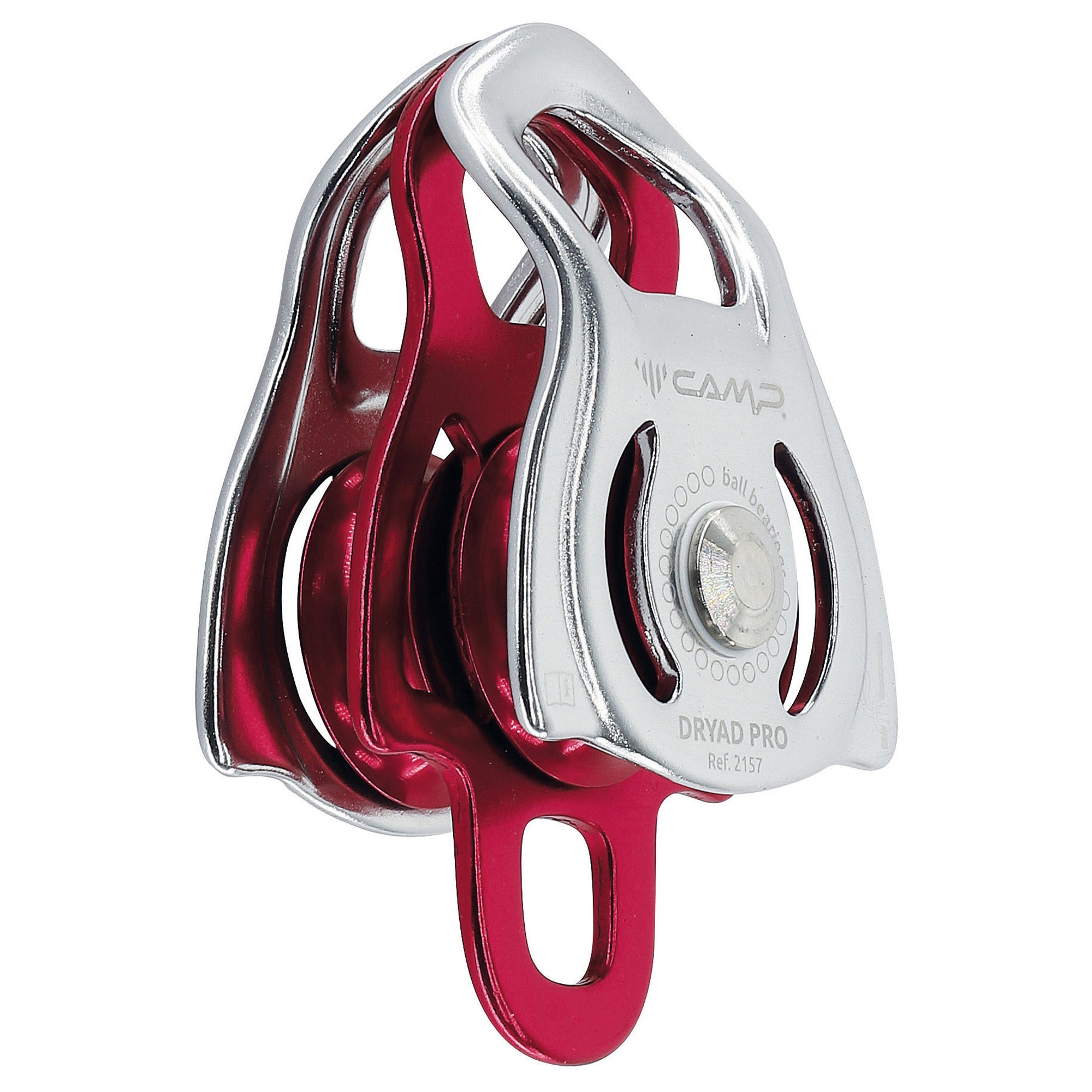 The Dryad Pro is a high-efficiency compact double pulley designed for quick and easy haul systems. It uses the same design as the Dryad, but features sealed ball bearings for higher efficiency and intensive use at higher speeds. It has a large primary attachment hole that accommodates two carabiner and a lower becket hole for one carabiner. Prusik knots can be installed on either side (aramid cord suggested) making it particularly useful for crevasse rescue scenarios.