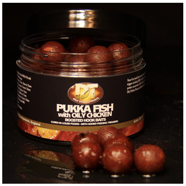 DT Baits boosted hookbaits are made using the same quality ingredients used in their boilies and have been boosted by a process of pre-soaking in a matched glug and additional feed inducing attractors to increase and prolong flavour leakage.
