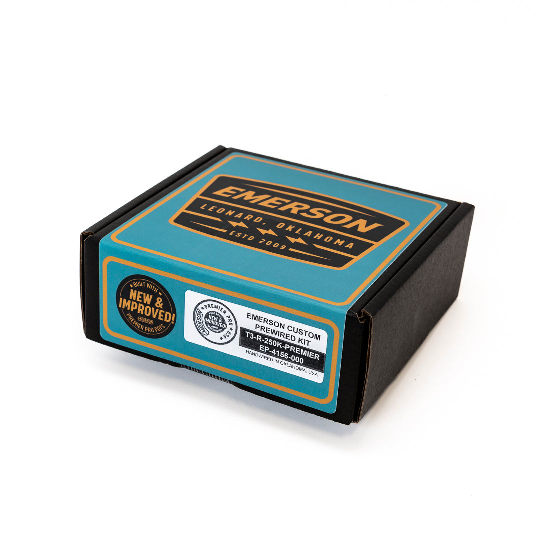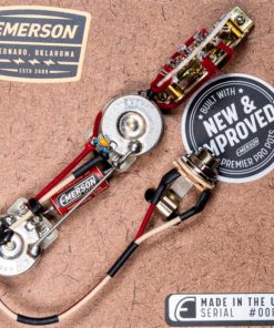 Emerson Custom’s 3-Way tele kits are their most sought-after prewired kit, and rightfully so; they enhance your tone! There’s immense pride in utilizing superior components that surpass the standard guitar electronics in performance and sound. Emerson kits feature meticulously hand-metered pots, ensuring consistency and a smooth taper for both volume and tone controls, allowing for precise adjustments without muddiness. The kits also boast Emerson Paper in Oil capacitors, renowned for their exceptional sound quality. Each kit is carefully hand wired in Broken Arrow, Oklahoma, USA, with a focus on excellent soldering and cleanliness and are designed for durability and longevity. We believe you’ll notice and appreciate the attention to detail, both in sound and appearance, that each kit offers.
