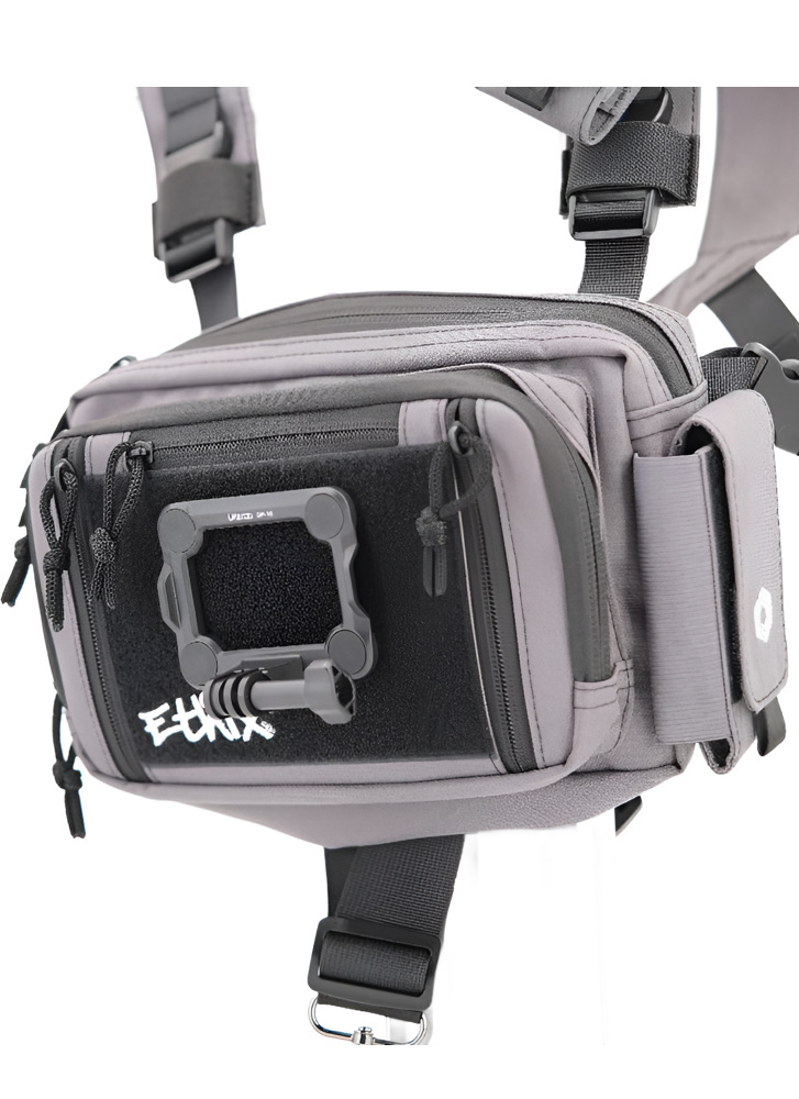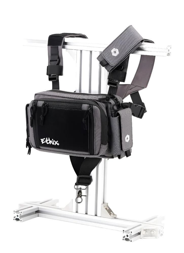 The Tundra edition chesty has a few minor material thickness changes for more radio support along with the new sleek grey and black colour way. With the right amount of space for only what you need the Ethix Chesty is one of the most useful pieces of kit out there. Offering 3X velcro locking elastic battery pouches that firmly grip a wide variety of pack sizes.Velcro-covered loops for walkie-talkies on the upper chest straps. Multiple non-spill double zipper pockets with pull tabs, including removable internal elastic straps for tools, battery checkers, and ND filter cases.
