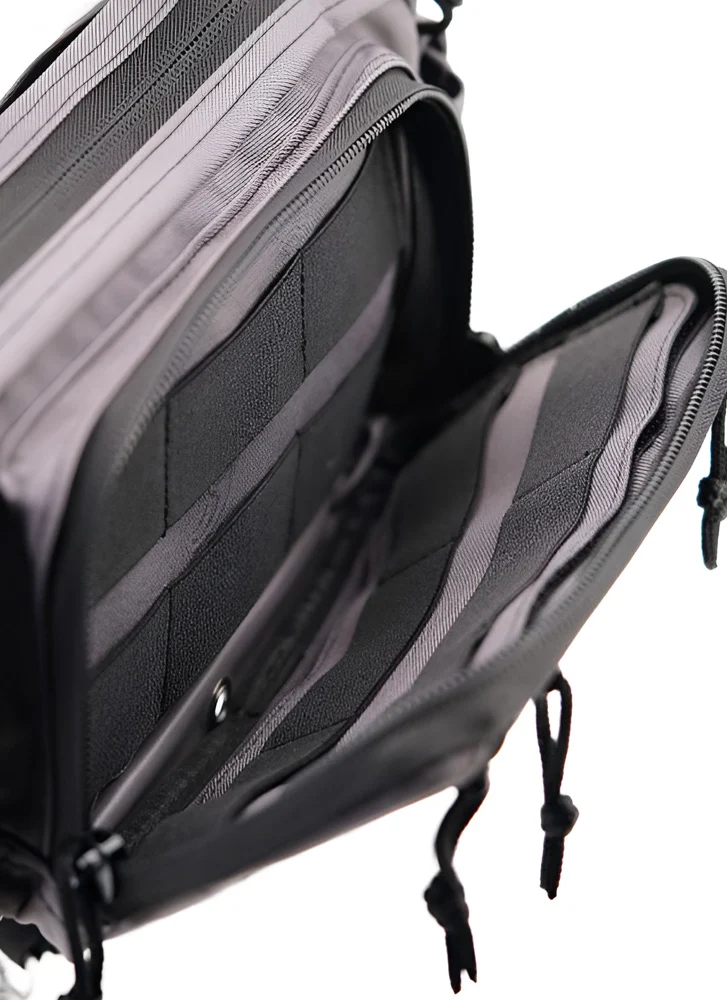 A larger rear pocket is lined with a durable coating designed to house up to 8” props and other sharp objects. 2x easily accessible GoPro battery or general accessory pockets. One of the most exclusive concepts is the non-interference adjustable radio lanyard, for pilots who want to go hands-free while rummaging for the right tool or a battery swap.