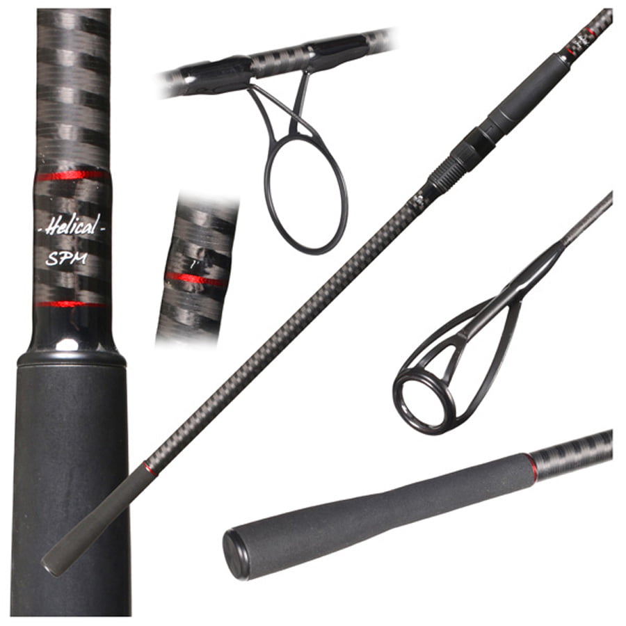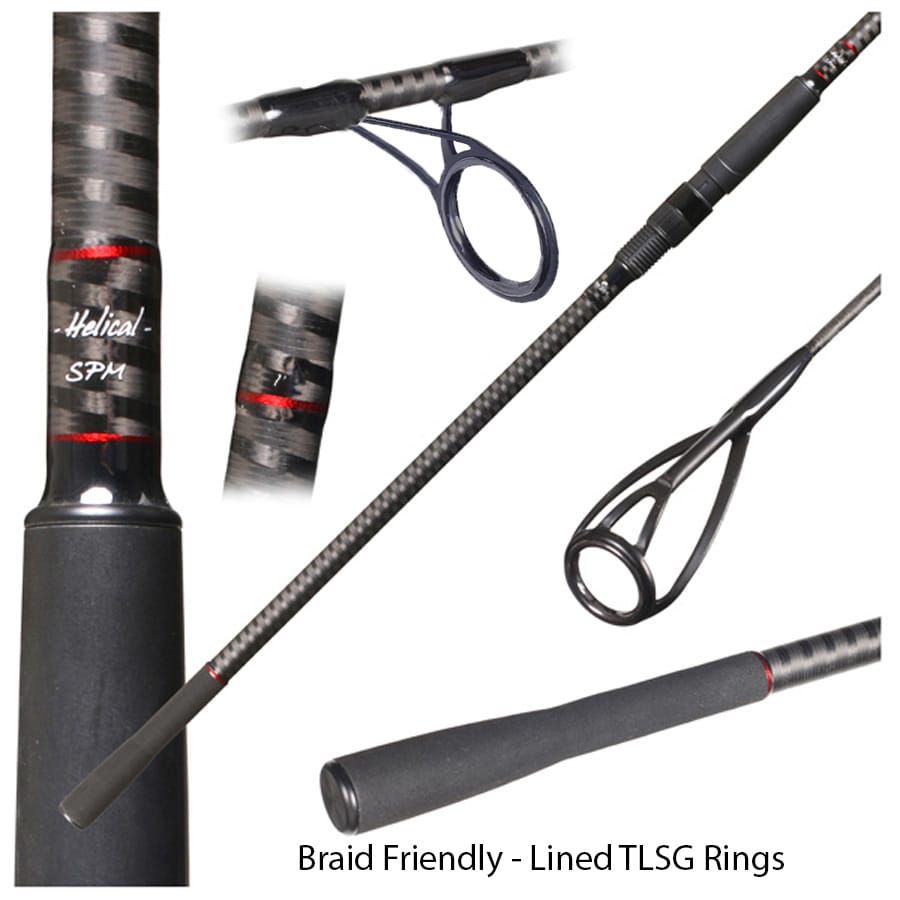 Complimenting the Helical Black range of carp rods, there is three models of SPM. These are designed to be used as both Spod and Marker rods and are made to the same exacting standards with the same carbons as the carp rods, a combination of Hankook and Toray. This gives plenty of backbone to the lower part of the rod whilst keeping the tip responsive, necessary to cast accurately. Rod weights are also reduced by using quality higher modulus carbons in both butt and tip section thus making long bouts of spodding less tiring.