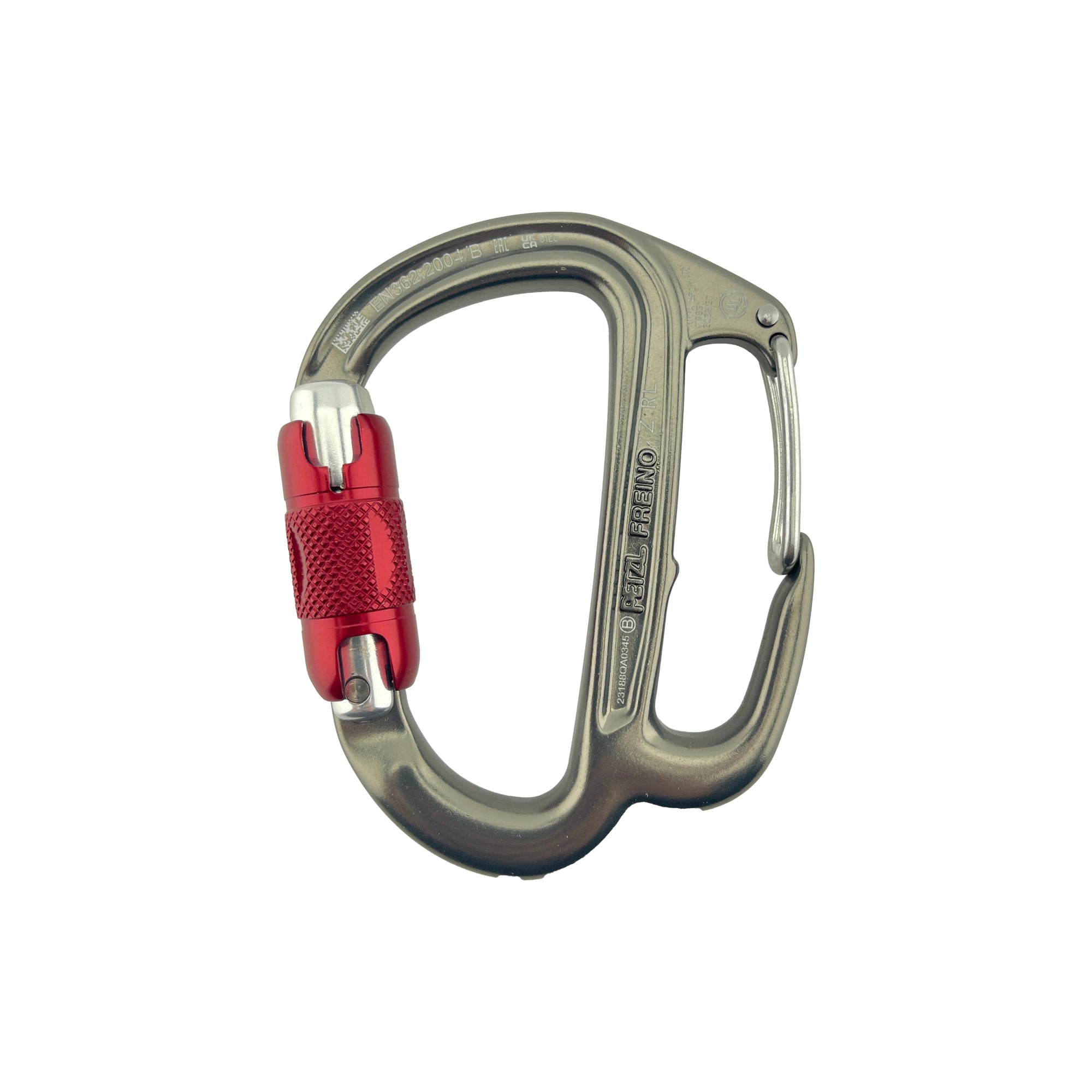 FREINO Z is an automatic locking carabiner with friction spur, designed for STOP and SIMPLE caving descenders. It allows the user to increase or control the braking action of the descent. It facilitates creation of a tie-off. FREINO Z can be rotated in order to make the descender loss-proof when transferred from gear loop to semi-circular carabiner.