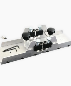 Used with a fret saw for cutting fret slots, the Fret Slotting Miter Box uses ball bearing guides that allow the fret saw to make faster, more precise cuts. The Fret Slotting Miter Box keeps the fret saw perpendicular to the fingerboard, and the ball bearing unit can be adjusted left and right to match the blade thickness. Cutting depth is also adjustable by turning the top thumbwheels. Accommodating fingerboards up to 10mm thick and 74mm wide, this aluminum Fret Slotting Miter Box has 3 mounting holes for attaching the miter box to your workbench.