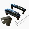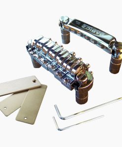 A direct replacement for any guitar equipped with the “Tune-o-Matic” bridge and Stop Tailpiece, this innovative solution allows for extremely fast and precise individual string height “action” adjustments as well as accurate individual intonation adjustments.