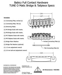 There are no gaps or voids to inhibit the transference of the vibration of the string and the resonance of the body. The “Full Contact Hardware” direct coupling replacement system for “Tune-o-Matic” style bridges mounts directly to the top of the guitar, therefore unwanted spaces between the bottom of the bridge and the top of the guitar are eliminated. The Babicz “Full Contact Hardware” system for “Tune-o-Matic” style guitars offers unmatched stability, increased sustain, dramatically improved fullness and tone along with complete adjustability.