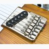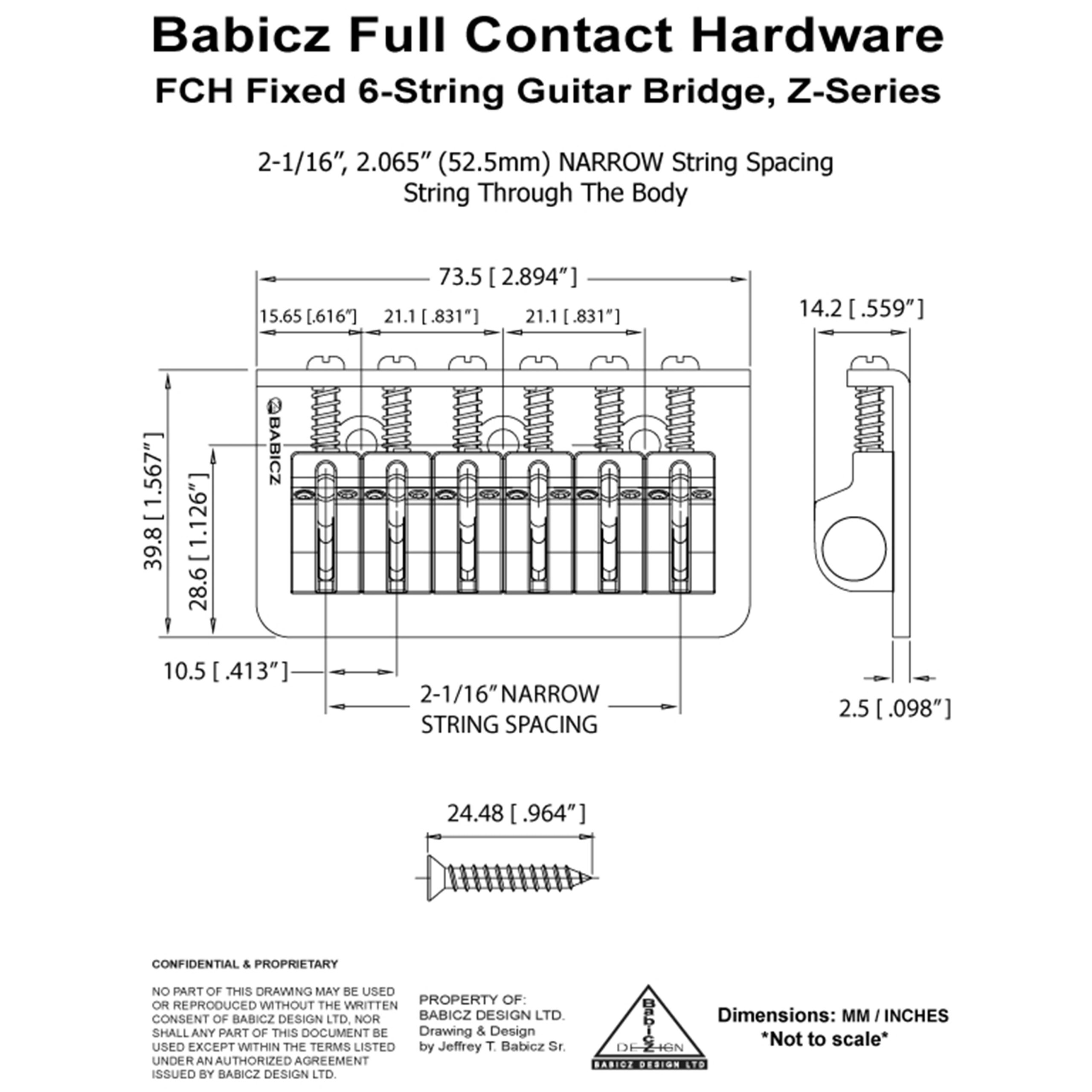 Three hole mount, string through the body. Includes mounting screws, instructions, and 1.5mm adjustment wrench.