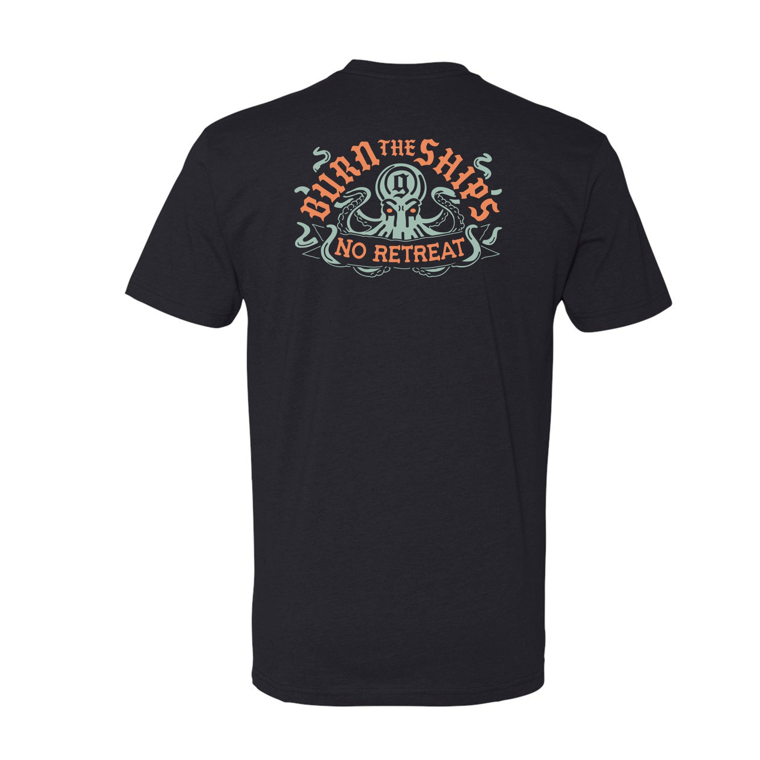 - Screen printed Burn the Ships Kraken design backprint