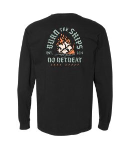 - Screen printed left chest Burn the Ships logo design
