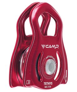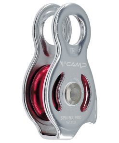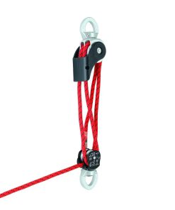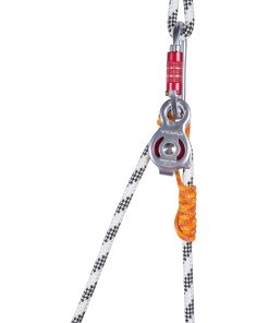 The Gemini double pulley is equipped with an auxiliary attachment point for use in technical hauling systems.