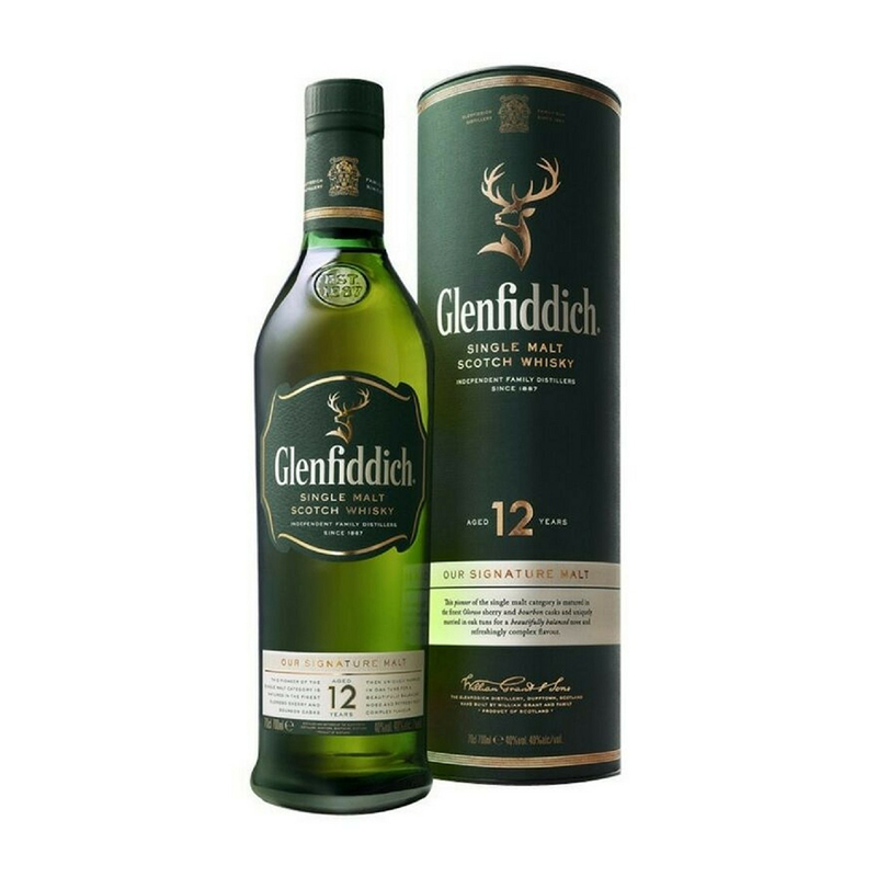 A small 20cl bottle of Glenfiddich’s flagship 12 year old whisky – as of 2011 the largest selling single malt whisky in the world.