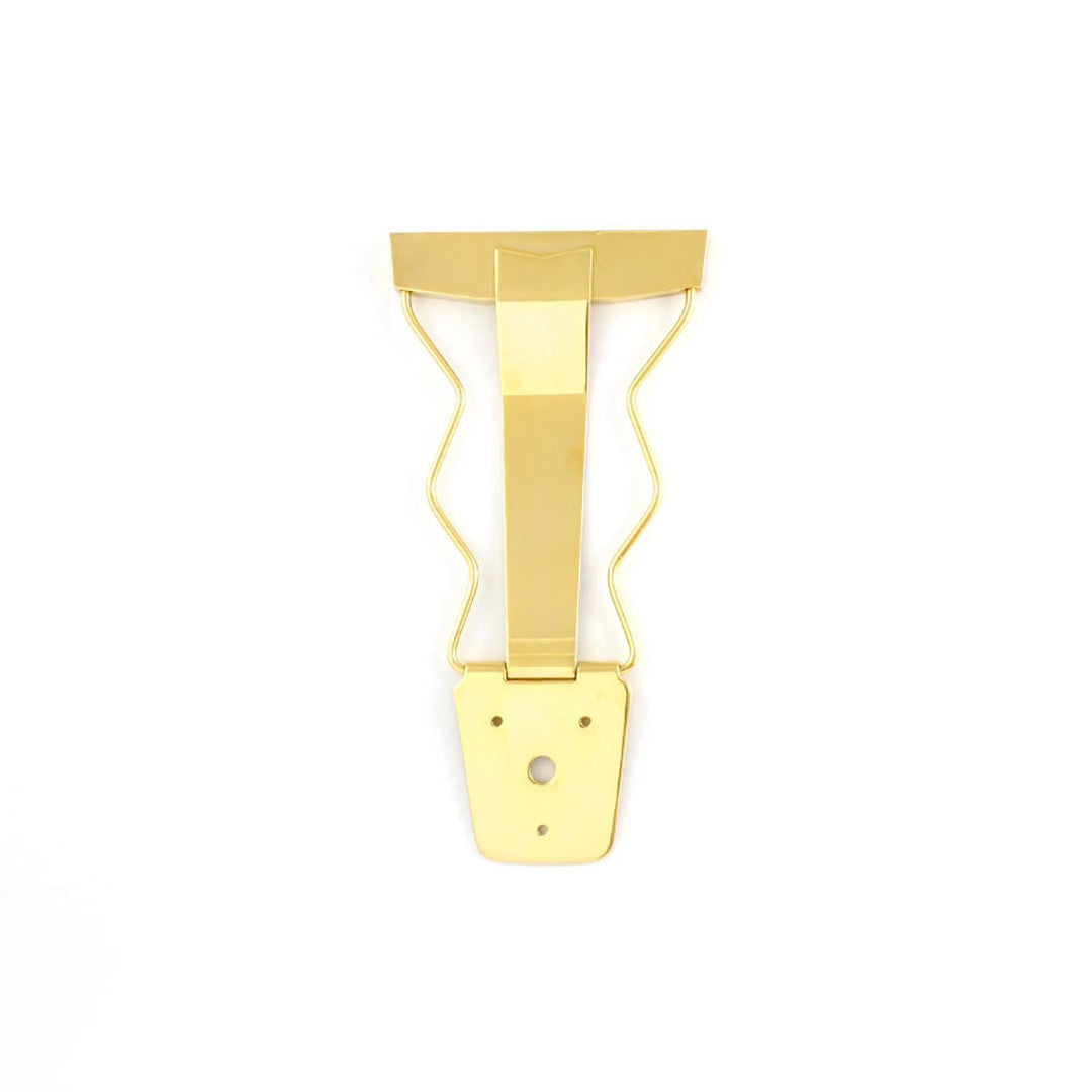 Gold Allparts fancy trapeze tailpiece for ES-175 ® new style, 2″ string spacing, 5-1/4″ long.