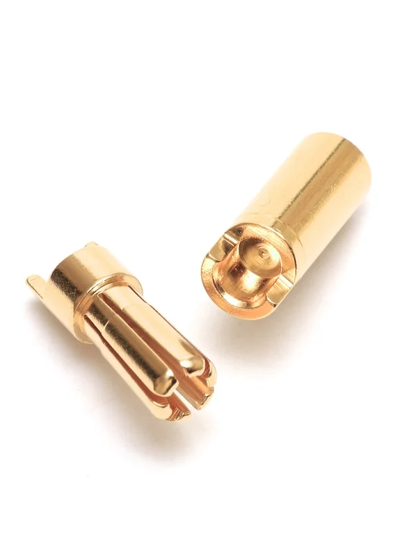 If you are in search of a reliable connector for high amp applications then this is it. These tightly fitting, 5.5mm sprung gold connectors can handle currents in excess of 130A+. Perfect for 3500mAH or larger capacity batteries. The gold connectors are well machined and gold plated with a rear side-cut for easy soldering. Fits wire diameter up to 4mm. Use 13 to 10 gauge wires. It is recommended to surround the exposed ends of the bullet connectors with heatshrink to protect against shorting.