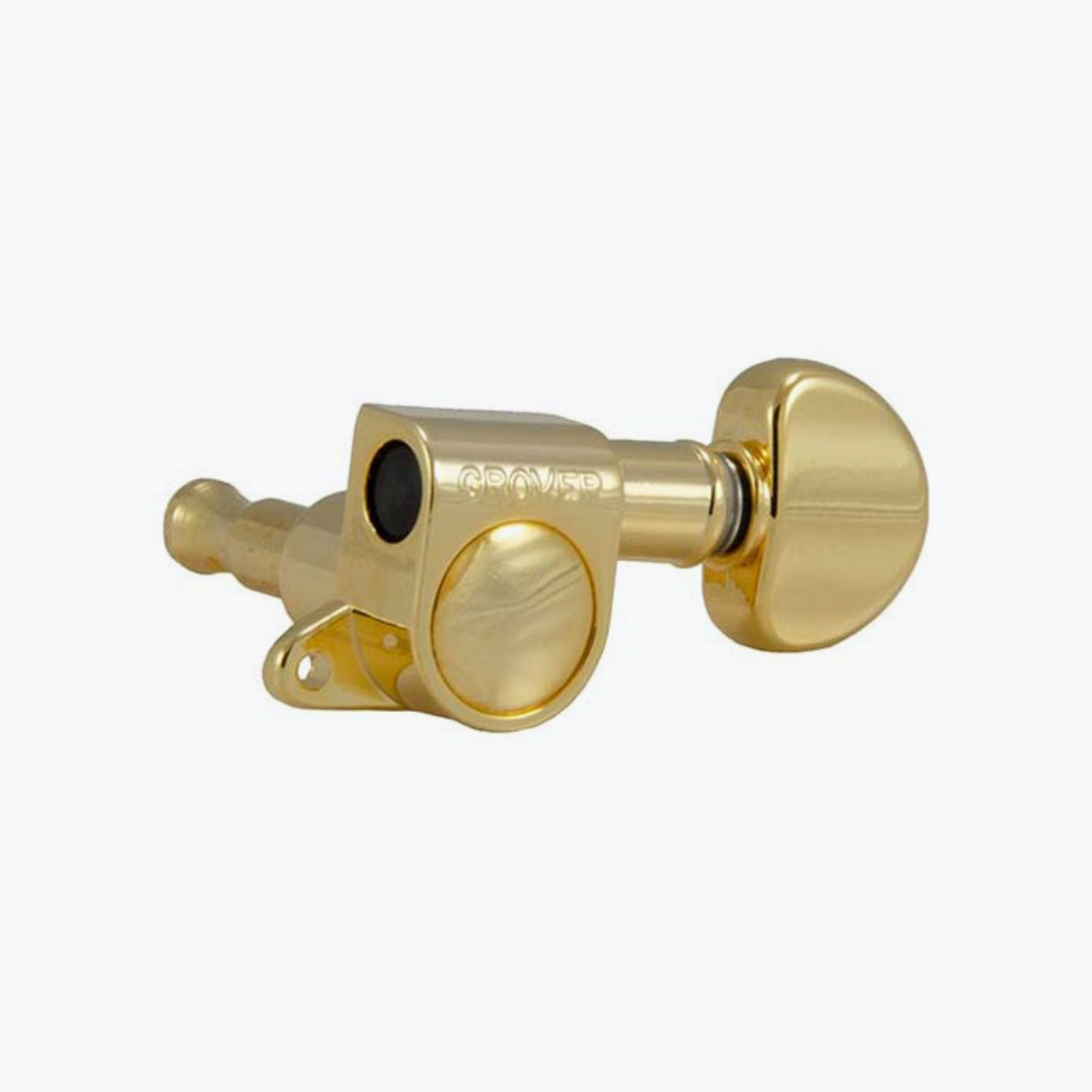 Totally professional in design and performance. Small, lightweight, this precision made machine fits guitar headpieces that will not take full size machines. The mini buttons provide more space for player’s fingers (even large fingers) to tune strings. Gear ratio is 14 to 1. Sealed in lubrication keeps the mini perfect for a lifetime! Includes 5/8″ washers, bushings and wood screws. Allparts #TK-7906.