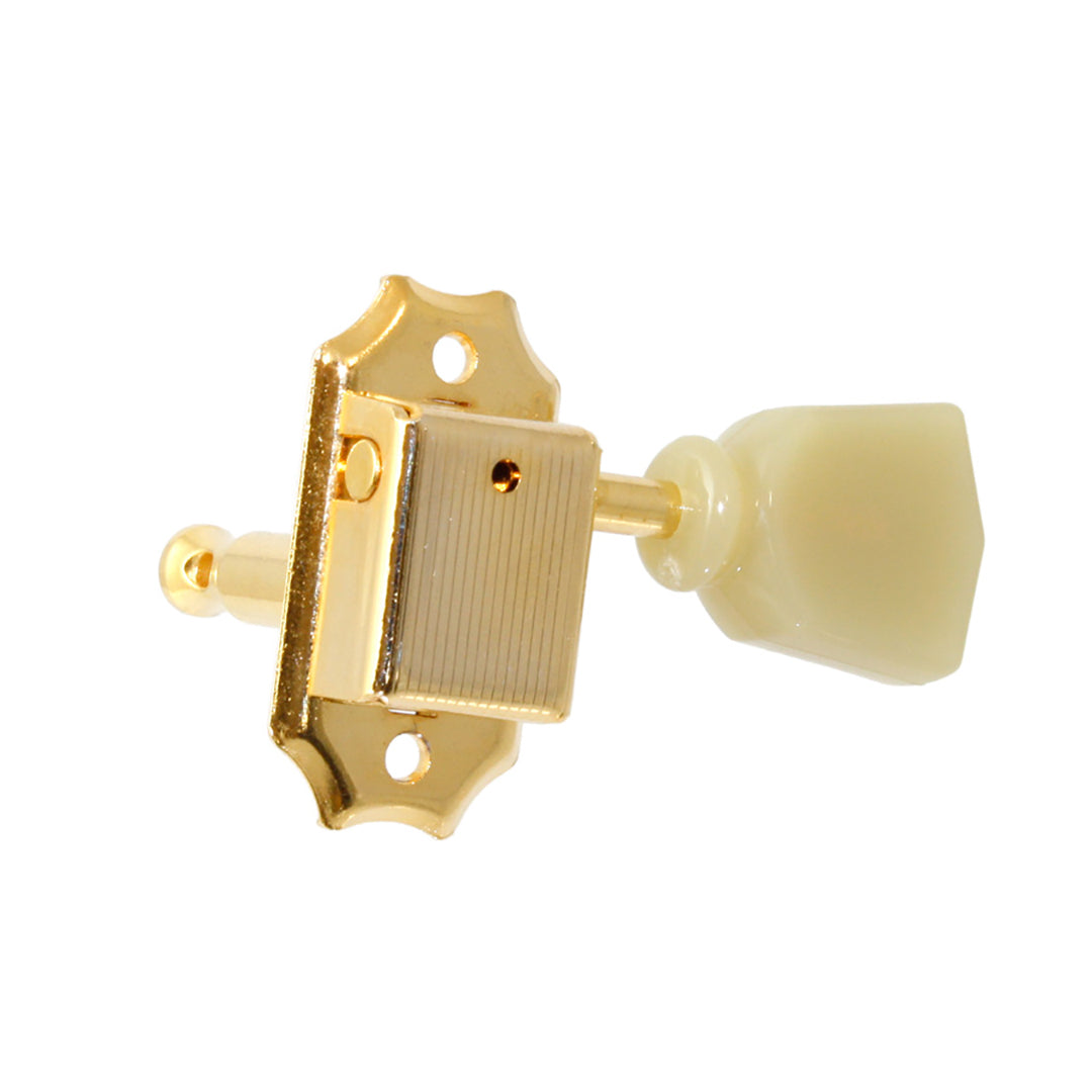 Gold vintage style tuning keys, 3 x 3, plastic keystone buttons, 14:1.