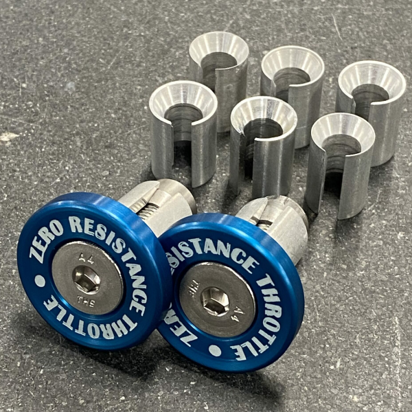 ZRT GP Handlebar Protectors are designed to protect grips and handle bars in the event of a crash and look good doing it. Crashing can damage grips and sometimes rip the ends clean off which allows dirt to get into the throttle tube area quickly ending a day of riding. The expansion collet keeps them locked tightly in place for an unparalleled level of rigidity and bar end protection. Available for use with or without a Zero Resistance Throttle Tube.