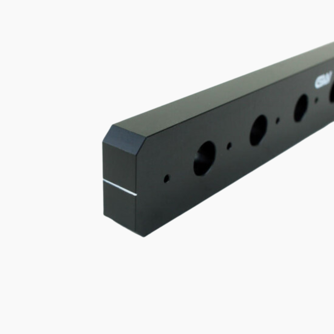 Made of Aluminum with a black anodized finish, this jig was made to take the guess work out of the placement of where vintage tuner post and screw holes need to be drilled. Each side of this jig has a centerline mark to ensure you’re on point with your measurements when registering the layout of vintage 6-in-line tuners. This is a must-have for any luthier who frequently installs vintage 7 screw mount 6-in-line tuners.