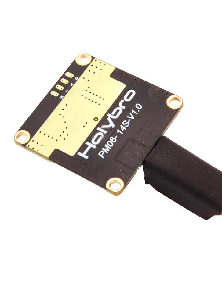 The PM06 V2 is a cut down version of Holybro’s Full-Size PM07 power management board, making it suited to smaller platforms, for example racing drones. This is the 14S version of the PM06, the standard PM06 V2 supports up to 10S input.