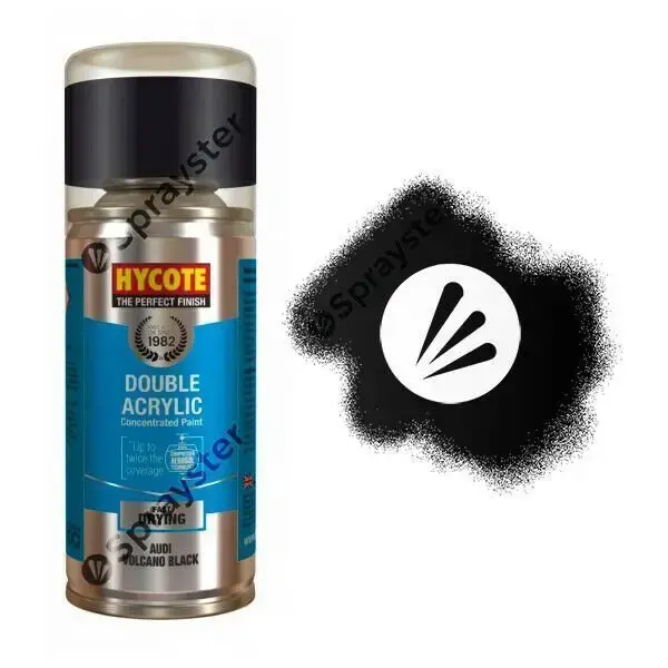 This Hycote Audi Volcano Black Pearlescent Spray Paint is a Double Acrylic Concentrated Paint, which means it lasts as long as the big can, but with less packaging.