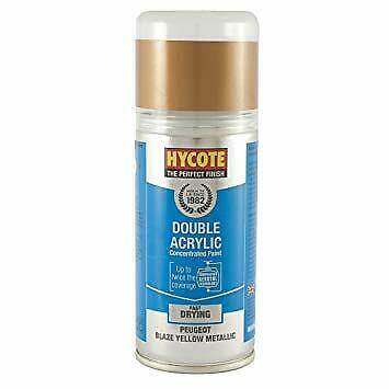 This Hycote Peugeot Blaze Yellow Spray Paint is a Double Acrylic Concentrated Paint, which means it lasts as long as the big can, but with less packaging.