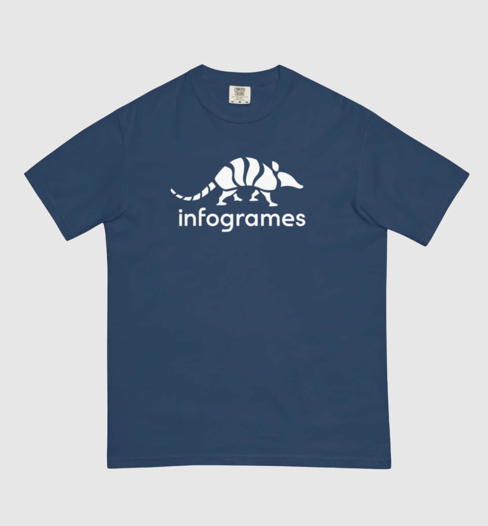 Everyone’s favorite armadillo is back! The new Infogrames logo in white on a navy or black tee. Premium, heavyweight cotton that offers a structured yet comfortable fit.