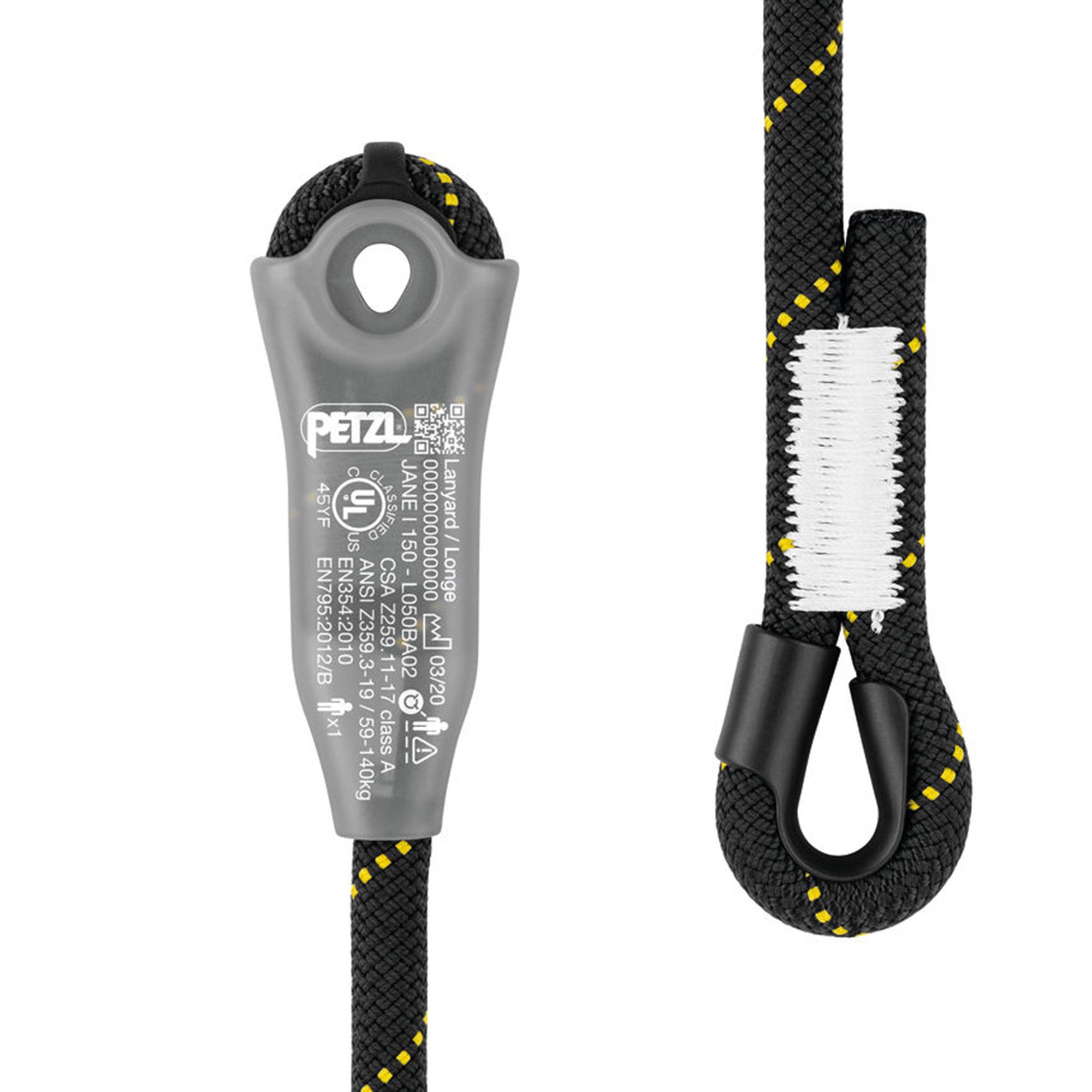 Jane-i is a non-adjustable dynamic rope lanyard that can be combined with an Absorbica energy absorber to make a single lanyard with energy absorber. The plastic sheath helps hold the carabiner in position and facilitates clipping while protecting the termination from abrasion. It can be used to set up a temporary anchor.